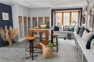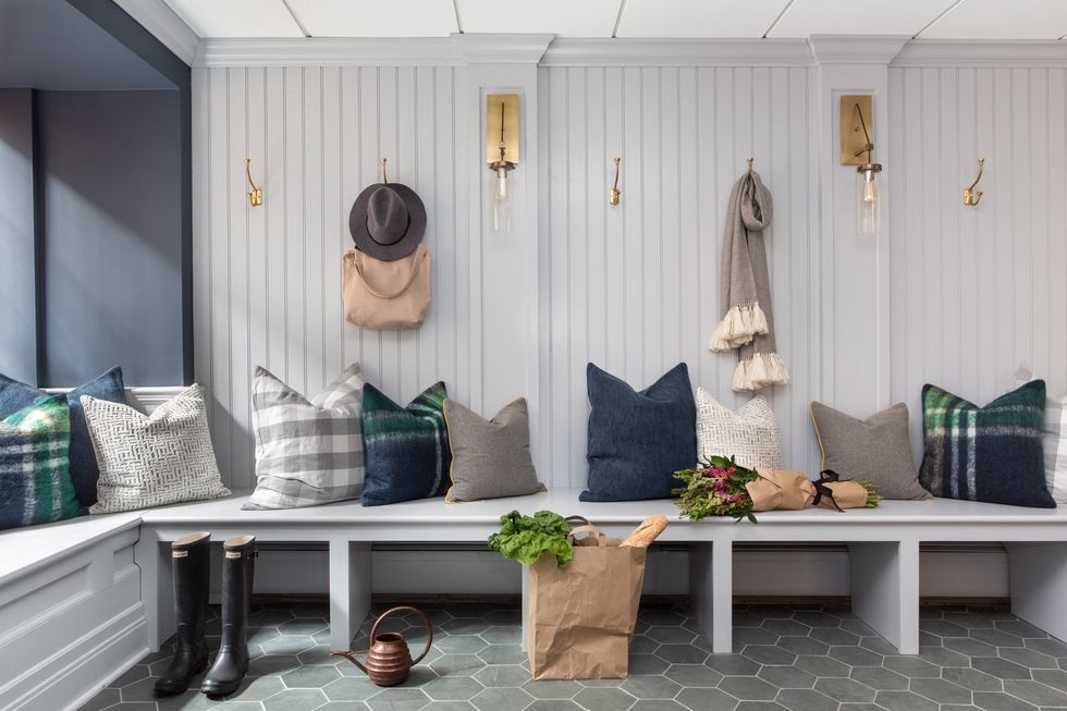 Another thing bigger families need? A place to throw keys, backpacks, and all other manner of ephemera that a growing brood attracts. In this home, Kantrowitz carved out a mudroom from a previously unused basement space—though she’s had clients go to even further extremes for this kind of space: “People are adding on additions literally for the sake of having a mudroom,” says the designer. “Everybody is looking for mudrooms now, whether in new homes or older ones. That’s another example of what I did to kind of modernize the home to make it more attractive to younger, larger families.”