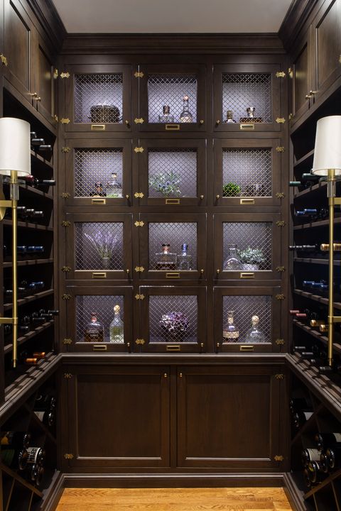 If a space isn’t used: Think of what would make you use it more. In this case, Kantrowitz turned an overlooked side space off the kitchen into a butler’s pantry and a statement wine room. “We’re asking ourselves, ‘what are the features in a forever home that we’d be interested in?'” explains Kantrowitz of her decision to spring for these types of spaces. But make no mistake: Just because these rooms become functional for storage doesn’t mean they can’t be beautiful. The designer created custom cabinetry with chicken wire fronts—to add a sense of depth in a shallow space—in the wine room, and then accessorized with statement sconces from Hudson Valley Lighting.